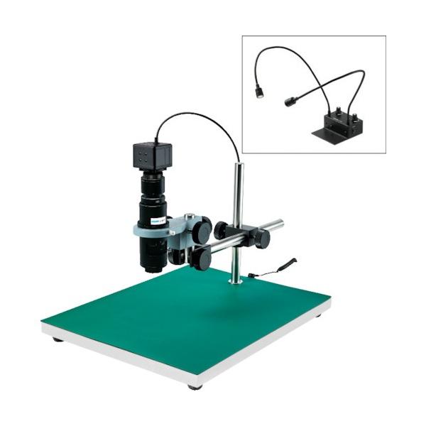 - ■特徴 新定番USBカメラ × 高倍率ズームレンズ 大きい観察対象に最適(スポット照明付) 価格と性能を両立した300万画素USBカメラのセットです。 フレキシブルアームのスポット照明付き。 レンズは倍率のみ調整可能なズームレンズの高倍率仕様(0.84〜6×)です。 B4サイズ程度までの大きめな観察対象におすすめです。 ■仕様 ベース寸法:350(W)×450(D)mm 撮像素子:1/2.5 CMOSイメージセンサ 有効画素数:2048×1536(300万画素) 最大フレームレート:最大30fps 動作環境:Windows 8 以降(32bit及び64bit)※日本マイクロソフト社のサポートが終了したOSでご利用中に問題が発生した場合の保障・サポート対応は行っておりません。 出力コネクタ:USB 2.0 マイクロスコープ 顕微鏡 【重量】 9.2kg 【入数】 1セット LKIT644
