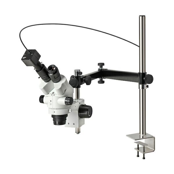 - 商品情報商品の説明観察作業が楽なズーム式 & カメラで確認・保存 自由度の高いロングアーム 観察作業が楽に行えるズーム式の実体顕微鏡と、価格と性能を両立した300万画素USBカメラのセットです。 カメラを顕微鏡に取り付けるアダプターは、肉眼で覗いたように表示するタイプです。 机などにクランプで取り付ける頑丈なロングアームにより、作業スペースを確保したまま使用時には引き出し、使用後は端へ避けるといった使い方が可能です。主な仕様 観察作業が楽なズーム式 & カメラで確認・保存自由度の高いロングアーム観察作業が楽に行えるズーム式の実体顕微鏡と、価格と性能を両立した300万画素USBカメラのセットです。カメラを顕微鏡に取り付けるアダプターは、肉眼で覗いたように表示するタイプです。机などにクランプで取り付ける頑丈なロングアームにより、作業スペースを確保したまま使用時には引き出し、使用後は端へ避けるといった使い方が可能です。