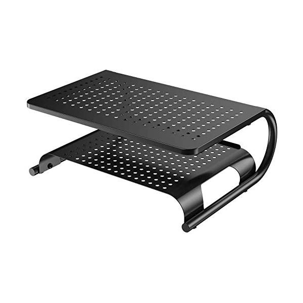 - モニター台 机上台 PCスタンド 机上ラック モニタースタンド パソコンスタンド 幅37cm耐荷重20kg<店内2点以上お買上げでさらに200円引クーポン進呈> モニター台 机上台 PCスタンド 机上ラック モニタースタンド パソコンスタンド 幅37cm耐荷重20kg 送料無料 省スペース2段棚でデスク上のスペースがより活かせて、大容量収納できます。モニター以外に、プリンターや電話機、FAX、本など色々なものが設置できるのでシーンを選ばる多機能に使えます。 軽くて丈夫なスチール製台部分は金網状のメッシュを採用しているので、視認性・通気性が良く圧迫感を感じさせません。インテリアに馴染みやすいシンプルなデザインです。脚の底面には滑り止めのゴムが付いていますので安定してモニターが設置できます。 作業快適にモニターの位置が高くなることで視線が上がり、自然と背筋がのびるようになります。姿勢が正しく守つことができて、楽に作業ができます。 取付簡単取付工具はすべて揃っていて、足を天板に取り付けて、付属のレンチでねじを締めるだけで取付は完成です。2分間不要で誰でも簡単に取り付けできます。 2年間品質保証本商品は24ヶ月間の保証がありますので、この商品については、何かご問題、ご不明な点がございましたら、ぜひお気軽に当社までご連絡ください。24時間以内に迅速に対応させていただきますので、ご安心ください。