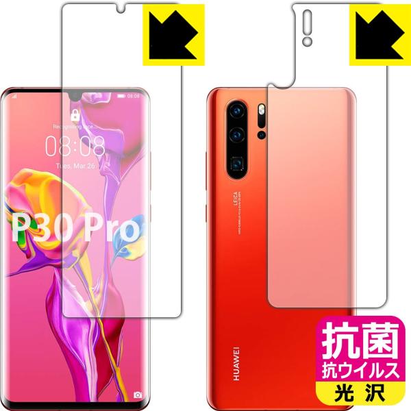 HUAWEI P30 Pro HW-02L 高い除菌性能が長期間持続! 抗菌 抗ウイルス【光沢】保護フィルム 【指紋認証対応】 (両面セット)