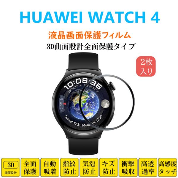 2枚 HUAWEI WATCH 4 スマートウォッチ 保護フィルム ウォッチフォー フルカバー 衝撃吸収 3D 自動吸着 指紋防止 液晶保護 シートシール スクリーンプロテクター