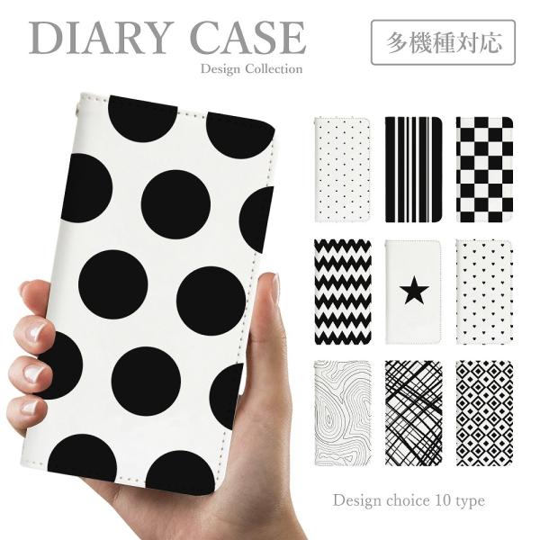 スマホケース HUAWEI nova lite2 手帳型 韓国 可愛い モノクロ シンプル ドット柄 チェック 星ロゴ