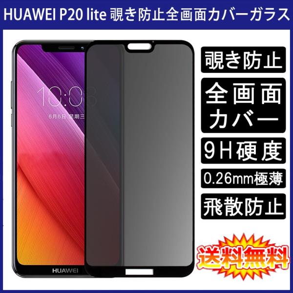 (送料無料) HUAWEI P20 lite (au HWV32) 覗き見防止 全画面カバー 液晶保護ガラスフィルム (SIMフリー Y!mobile 0.26mm 2.5D P20lite プライバシー 強化ガラス)