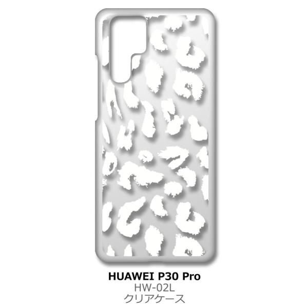 P30 Pro HW-02L HUAWEI クリア ハードケース 豹柄 ヒョウ柄 レオパード (ホワイト) カバー ジャケット スマートフォン スマホケース