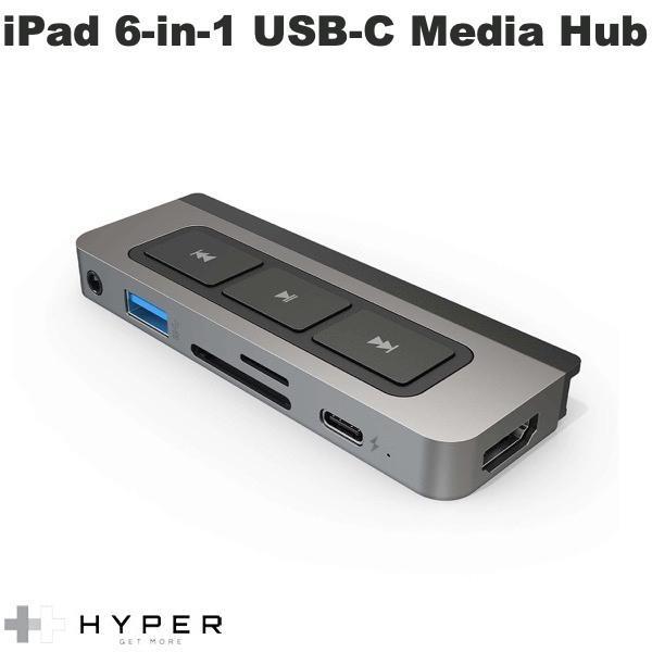 HYPER++ ハイパー HyperDrive iPad 6-in-1 USB-C Media Hub PD対応 HDMI SD / micro SD 3.5mmオーディオ USBハブ スペースグレー ネコポス送料無料