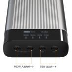 100Wh/27000mAhの圧倒的バッテリーを搭載。出力ポートは最大100Wと最大65WのUSB-Cポート(Power Delivery 3.0対応)が2つずつ設けられています。これらすべてのポートを十分に活用できる合計245Wの高出力仕様です。
