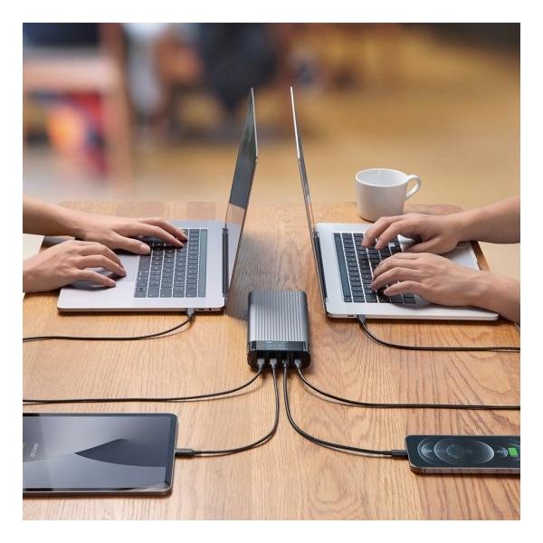 HyperJuice 245W バッテリーパック 27,000mAhは、100Wh/27000mAhの圧倒的バッテリーと、4つのUSB-C Power Deliveryポートを搭載した大容量モバイルバッテリーです。ノートPCや大型タブレットはもちろん、デジタルカメラ、スマートフォンなど最大4台のUSB-Cデバイスをすべて同時に充電できます。