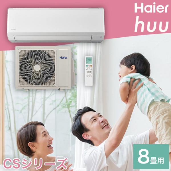 Haier ハイアール Wフリーズ洗浄 冷暖房 ルームエアコン huu おもに8畳用 (冷房7〜10畳 / 暖房6〜8畳) 2.5kW 単相100V 15A CSシリーズ JAA-CS254A-W 2024年