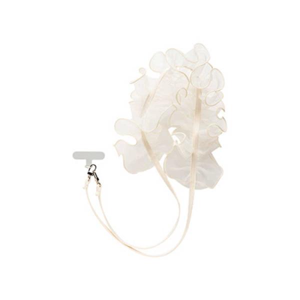 - sorureda!チュールショルダーストラップ※画像中に使用している小物や別売り商品は コーディネート例のため販売商品には含まれません。 ファッションの主役級! くしゅっとエアリーなショルダーストラップ お気に入りのスマホケースに取り付けるだけ。 手ぶらでお出かけができるショルダータイプのストラップ。 くしゅくしゅっとしたやわらかなレースがアイコニックな、ファッションアイテムとしても活躍するデザインです。 ・付属のホルダーシートを使用してスマホケースに装着 ・ナスカンフックで取り付け簡単 ・スマホだけでなくミニバッグのショルダーストラップとしても楽しめる ●sorureda! 「ときめく、胸が高鳴る(ソルレダ)」という韓国語が由来のブランド「sorureda!(ソルレダ)」は、 韓国トレンドや「可愛い」を詰め込んだアイテムを展開しています。 いつだって新しいトキメキに出会える「sorureda!(ソルレダ)」で毎日をもっと楽しく。 ●本製品ご使用における人体・スマートフォン本体を含む持ち物・データなどの損傷、損失、紛失に対し、弊社は一切の責任を負いかねます。 ●摩擦等により紐が劣化した場合は速やかに使用を中止してください。落下・破損等の原因となります。 ●金属や樹脂などの硬い素材を使用しているため、スマートフォンやケースなどへ傷がつくことがあります。 ●小さな子供の手の届かないところで使用・保管してください ●水濡れや摩擦等で衣服などに色移りしてしまう場合がありますのでご注意ください。 ●デニム生地や濃い色の革製品などの染料が摩擦により本製品に色移りする場合があります。 ●ご利用状況・環境、溶剤の使用などにより変色や変質が起きることがあります。 ●小さな部品がありますので誤飲にご注意ください。 ●本製品およびパッケージは改良のため予告なく仕様を変更する場合があります。 ●記載されている製品名・会社名などは各社の商標または登録商標です。 <付属のストラップホルダー> ●ご利用のケースと本製品の併用により充電端子が干渉する場合、本製品を外してご使用ください。 ●ケースの形状・材質により、ご使用いただけない場合があります。 ●ご使用のケース、本製品、充電器の組み合わせによってワイヤレス充電がご利用いただけなくなる場合があります。 ●本製品はスマホケースと組み合わせて使用するアクセサリーです。単体ではご使用いただけません。商品仕様 ストラップ長:最短約125cm、最長約130cm(カラビナパーツ含む) 主素材:ポリエステル、ポリウレタン、亜鉛合金 重量:約38g 付属品:ホルダーシート