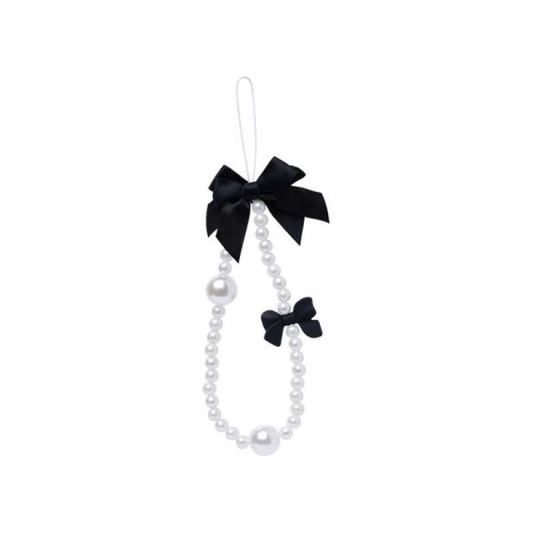 HAMEE PHONEAR リボン&パールDUOストラップ ブラック 661-056751