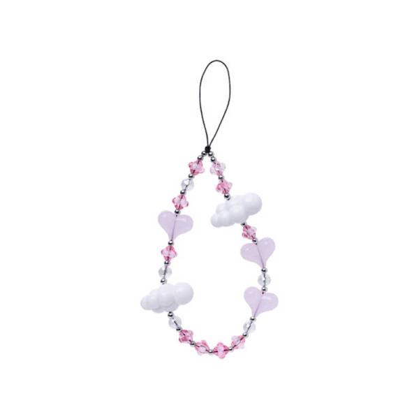- キュートなもこもこ雲が可愛い!カラフルなハートストラップ存在感のあるハートと、もこもこ雲がポイントのストラップ・もこもことした雲のフォルムがキュート・ピンク・ブルーの雲はホワイト、パープル・グリーンの雲はオーロラカラー・腕を通して落下防止に