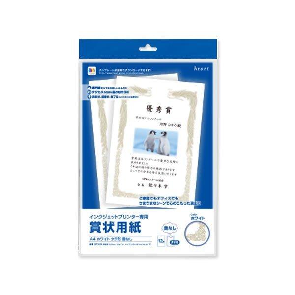 賞状用紙 インクジェット専用 賞状用紙 A4-4(タテ型 雲なし)ホワイト 12枚 SP1434 ハート heart