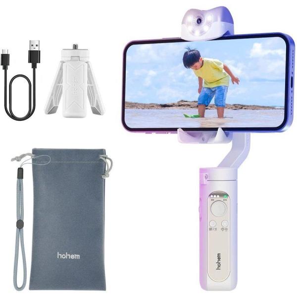 Hohem iSteady V2 スマホ iphone ジンバル 自撮り棒 263g超軽量 3軸スタビライザー AI顔追跡 LEDライト付き 美顔 専用APP制御 Vlog作り