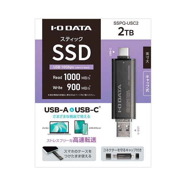 IO Data アイオデータ 2TB 10Gbps USB 3.2 Gen2 USB-A & USB-C対応 スティックSSD SSPQ-USC2