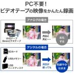 - ■PC不要でVHSやminiDVなど、磁気テープのデータを簡単にデジタル化できるアナログキャプチャーです。ビデオデッキやビデオカメラとTVの間に繋いで録画ボタンを押すだけでSDカードやUBSハードディスクに保存できます。※4:3の映像データは16:9に引き伸ばされます。■PCいらずでSDカードやUSBハードディスクに映像データをダビングできます。これまで録りためたVHSテープや、思い出が詰まったminiDVビデオの映像をSDカード、USBハードディスクやUSBメモリーにデジタル化して残すことができるので、PCなどでも楽しむことができます。■ビデオカメラやビデオデッキとテレビを接続したら、あとはボタンを押すだけで、SDカードやUSBメモリー、USBポータブルハードディスクにダビングOK!テレビに懐かしい映像を映しながら、かんたんな操作でダビングできるので、初めての方でも安心してご利用いただけます。■ボタン1つ押すだけで、録画モードと再生モードを切り替えることができるので、PCや専用のプレイヤーがなくてもテレビで再生できます。ダビングした映像はMP4形式なのでスマホやタブレットでもご覧いただます。※お使いの機種により再生できない場合があります。