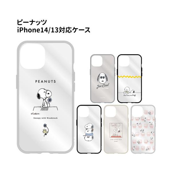 送料無料 ピーナッツIIIIfit Clear iPhone14/13対応ケース/スヌーピー ジョークール チャーリーブラウン きょうだい ドッグハウス 総柄