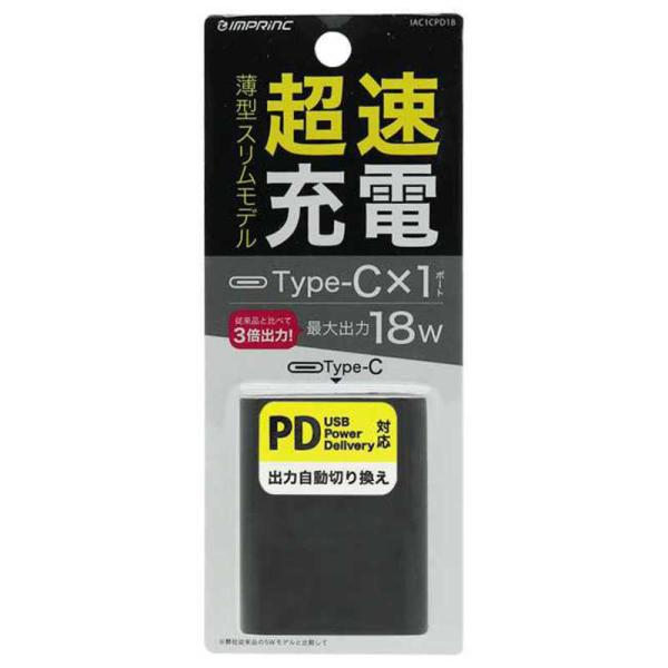 インプリンク PD対応Type-Cポート平型AC充電器18W BK IAC1CPD18BK