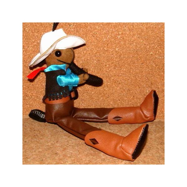 R4T ネイティブアメリカン インディアンの精霊 【ココペリ】 ぬいぐるみ 人形 ストラップ ウェスタン 男の子 カウボーイ (茶) スウェード スエード レザー 皮革