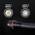 - INON(イノン)LE600h-W LEDライト ★最大光量600ルーメン、照射角75度、高演色・高色温度LEDチップ商品仕様 高演色・高色温度LEDチップ搭載 広角撮影をカバーする ワイドビームハンディー水中ライト ● 最大光量600ルーメン、照射角はワイドな75度。主に撮影用ライトとして使いやすい光量と照射角を備えます。高演色LEDチップを搭載したことで、被写体の色再現性、視認性が向上し、少し広めな75度の範囲を均一に照らす強力な光線は、マクロ、ワイドマクロ撮影に最適です。洞窟やナイトダイビングで広範囲を照らすダイビングライトとしても威力を発揮します。 ● イノンhシリーズライトの色再現性が高い高演色・高色温度LEDチップを新たに搭載し、演色性はRa90。色温度は6500K。フォーカスライトやマクロ撮影の光源として、最適な光質を生み出します。 ● 色温度を高くしたことでストロボ光に近い色合いを実現し、ストロボ撮影時のターゲットライトとして使用しても、ライトの色味の違和感なく撮影が可能です。 ● 表面には耐腐食性や耐摩耗性に優れた特殊な塗装でコーティングを施し、さらに高耐久に仕上げました。 ● ライトの照射を嫌う水中生物にストレスを与えにくくする「赤フィルター・LE」が付属しています。 ● スチルカメラ / ビデオカメラに取り付ける為の、撮影用途向けオプションが豊富にラインナップされています。 ● 一般的で入手しやすい単三形電池3本を電源に採用。eneloop pro充電池使用時の実用点灯時間は約80分(*)に達します。「eneloop」等の対応充電池を使えば、充電器をストロボと共通で使うことができ、荷物の軽減や使い勝手の向上に役立ちます。 (*) 約25℃の水中で連続点灯させ、明度が発光開始直後の半分になるまでの時間(実測値)。 ● ライトヘッドや電池ボックスは、耐海水性に優れたアルミ合金製。シンプルな構造で、可動部にはダブルOリングを採用し、耐圧水深は120m。さらに、スイッチ部と電池セット部を独立させ、ストッパーを備えたシンプルな構造の回転スイッチを採用することで、確実なON/OFF動作と浸水リスクの低減を実現しています。 ● ライトヘッドや電池ボックスの電気接点に金メッキをほどこし、通常の使用では、基本的に接点のメンテナンスフリーを実現しています。 ●単三形電池3本を使用する「LE700-S Type2」「LE700-S」「LE700-W Type2」「LE700-W」「LE600h-S」「LE550-S」「LE550-W」「LE350 Type2」「LE350」「LE330h」「LE250」とは、ライトヘッド部分の交換が可能。用途に応じた使い分けや、将来的なバージョンアップにも、柔軟に対応可能です。 ● [付属品] 赤フィルター・LE、ハンドストラップ、イノングリス