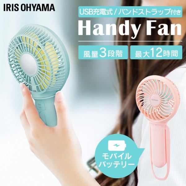 扇風機 小型 おしゃれ ハンディ ハンディファン アイリスオーヤマ コンパクト 持ち運び ミニ扇風機 USB 充電式 JHFBL-01-A JHFBL-01-P ソーダ シェルピンク