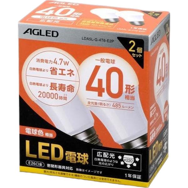 IRIS OHYAMA アイリスオーヤマ LED電球 E26 広配光 40形相当 電球色 2個セット(20000時間) LDA5L-G-4T6-E2P