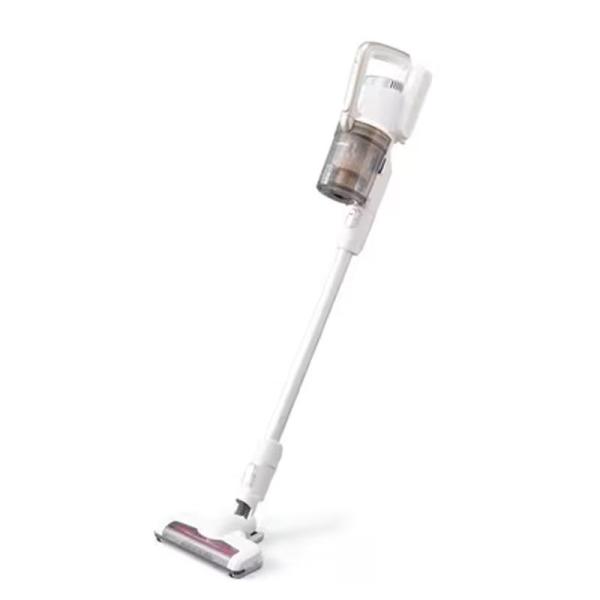 - 手軽に使えるスティッククリーナーと、ハンディモップで「ついで」掃除が気軽にできるサイクロン式のクリーナーです。【仕様】〇サイズ:幅252×奥行230×高さ1090mm〇重量:2.2kg〇素材:ABS樹脂、スチール〇集じん方式:サイクロン式〇使用時間:標準モード/約45分、ターボモード/約17分※使用環境により異なります(満充電・バッテリー初期/20℃時)〇バッテリー容量:2、000mAh〇定格電圧:DC18V〇充電時間:約4時間半(室温・使用時間により充電時間が長くなることがあります)〇外形寸法:スタンド設置時/(約)幅252×奥行281×高さ1150mm〇使用温度範囲:0〜35℃〇使用電池:リチウムイオン二次電池〇バッテリー寿命:約500回(充電回数)〇充電電源(充電アダプター):入力/AC100-240V 50、60Hz・出力/DC21V 0.5A〇集じん容積:0.3L〇セット内容:掃除機本体、充電アダプター、スタンド、すき間ノズル、静電モップ、モップ帯電ケース