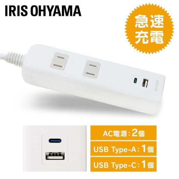 延長コード 2m 電源タップ コンセント コンセントタップ USB付き 電源 電源コード おしゃれ USB充電器 延長コード まとめ買い TPU-22AC-W アイリスオーヤマ