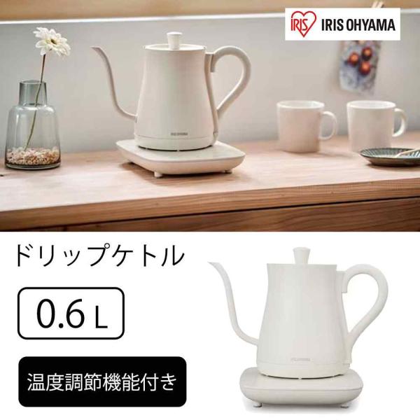 アイリスオーヤマ ドリップケトル 温度調節付 0.6L [電気ケトル 湯沸かし やかん ポット お茶 コーヒー キッチン家電 母の日] IKE-C601T-CW ホワイト