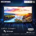- ネット動画視聴に特化したチューナーレステレビです。(※地上波、BS/CSチューナーは付いておりません。)ネット動画視聴の他にも、サブテレビとしての利用や大画面でゲームを楽しみたいときにもおすすめです。・VAパネル搭載:高コントラストで深みのある映像を楽しめます。・直下型LEDバックライト:LEDで画面全体を明るく照らし、色鮮やかで美しいメリハリのある映像を再現します。・Chromecast built-in:お気に入りの映画や番組、アプリ、ゲームなどをスマホ、タブレットやノートパソコンからテレビに直接キャストできます。・Dolby Audio:高品位サウンドによるリアルな音を楽しめます。・HDR対応:明暗の表現力が上がり、細部まではっきりしたリアルな表現を楽しめます。・Googleアシストボタン搭載:押して話しかけるだけでテレビの操作が可能です。※Chromecast built-in、およびその他のマークは、Google LLCの商標です。※Dolby、ドルビー、Dolby Audio、およびダブルD記号は、アメリカ合衆国とまたはその他の国におけるドルビーラボラトリーズの商標または商標登録です。●画面サイズ24V型(幅約52.15×高さ29.32cm)●本体寸法(cm)幅約55.3×奥行約14.5×高さ約37(※スタンド取り付け時)●本体質量約2.7kg●画素数(水平×垂直)1366×768●スピーカーチャンネル:2チャンネル音声出力:3W+3W●アプリNetflix、Prime Video、YouTube、YouTube Music、Media Player、Help、Multi-Screen、Live TVなど●入出力端子AV入力端子:3.5mm4極ミニジャック×1HDMI端子:HDMI×2(HDMI1、HDMI2)ARC対応HDMI端子:HDMI1HDMI対応入力解像度:480i、480p、1080i、720p、1080p、VGA、SVGA、XGA、WXGA、SXGA音声出力:3.5mmステレオミニジャック×1、光デジタル音声出力×1LAN:LANポート(RJ45)×1USB:USB2.0端子×1●使用環境温度5〜40℃/湿度80%RH(結露なきこと)●壁掛け金具(別売)ねじ穴寸法200mm×100mm/ねじ:M4×12mm×4本●付属品Bluetooth(R)リモコン(型番:LTL-XRC1)×1、リモコン用単4形乾電池×2、スタンド×2、スタンド固定用ねじ×4、AV入力アダプター、取扱説明書、保証書※本製品は日本国内専用です。海外では使用できません。(検索用:テレビ・チューナーレステレビ・24V型・液晶テレビ・Google・TV・搭載・tv・スマートテレビ・チューナーレス・ネット対応・HD・ハイビジョン・新品・セカンドテレビ・一人暮らし・動画配信サービス・対応・4967576779173・アイリスオーヤマ)最強翌日配送対象商品に関するご案内 最強翌日配送対象商品・対象地域に該当する場合は最強翌日配送マークがご注文カゴ近くに表示されます。 最強翌日配送可能なお支払方法は【クレジットカード、代金引換、全額ポイント支払い】のみとなります。 下記の場合は最強翌日配送対象外となります。 ・15点以上ご購入いただいた場合 ・時間指定がある場合 ・ご注文時備考欄にご記入がある場合 ・決済処理にお時間を頂戴する場合 ・郵便番号や住所に誤りがある場合 ・最強翌日配送対象外の商品とご一緒にご注文いただいた場合 ・お届け先住所文字数が40文字以上の場合
