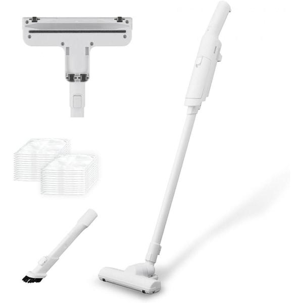 - 【充電式紙パックスティッククリーナー】 ●充電電源 入力:AC100V、50/60Hz 出力:DC13.7V、0.5A ●定格電圧 DC10.8V ●集じん容量 0.3L ●充電時間 約4時間(※1) ●使用温度 5~35℃ ●連続使用時間(※2、4) 標準:約18分/約27分(※3) ターボ:約10分 ●バッテリー リチウムイオン2次電池 ●製品質量(付属品含まず) 本体のみ:約0.8kg フロアヘッド・延長パイプ含む:約1.6kg ●製品サイズ(cm) 幅約22×奥行約23×高さ約105 ●付属品 充電アダプター、充電スタンド、静電モップ、モップ帯電ケース、すき間ノズル、 使い捨てダストパック×25枚(1枚は本体内にセット済み) ※1:室温・使用時間などにより充電時間が長くなることがあります。 ※2:満充電、バッテリー初期温度:20℃の場合。 ※3:付属アタッチメント使用時。 ※4:使用状況により異なります。 【JAN4967576806688】 【ご購入前にご確認ください】※沖縄・離島、その他一部地域からのご注文はお受けできません。システムの都合上ご注文は可能ですが、自動キャンセルになりますのでご了承ください。※当店ではのし・ラッピング梱包は承っておりません。※お客様都合でのキャンセル及び返品・交換は受け付けておりません。あらかじめご了承の上、ご注文ください。※商品の仕様・パッケージや原産国・原産地などは、メーカーの都合により予告なく変更される場合がございます。最新の情報につきましては、メーカーにご確認くださいますようお願いいたします。