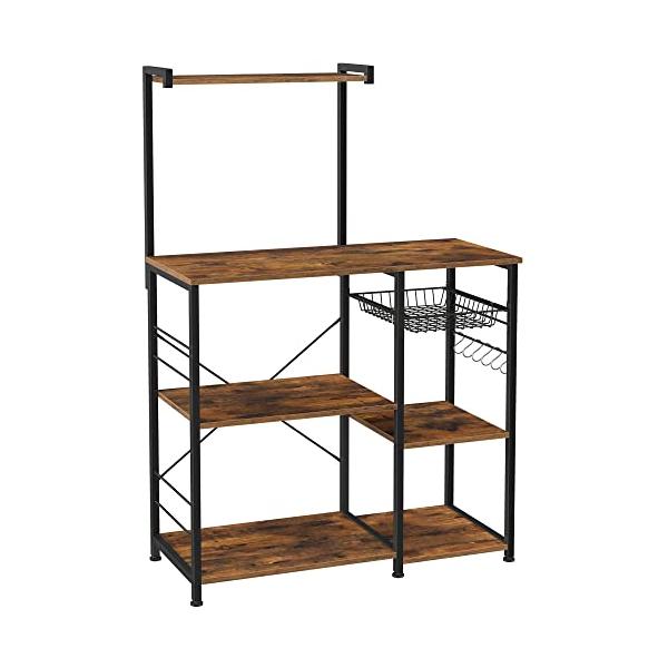 VASAGLE レンジボード レンジ台 キッチンラックレンジラックレンジ台 スライド棚付き 大型レンジ対応 キッチンワゴン 食器棚 キッチン収納 6個