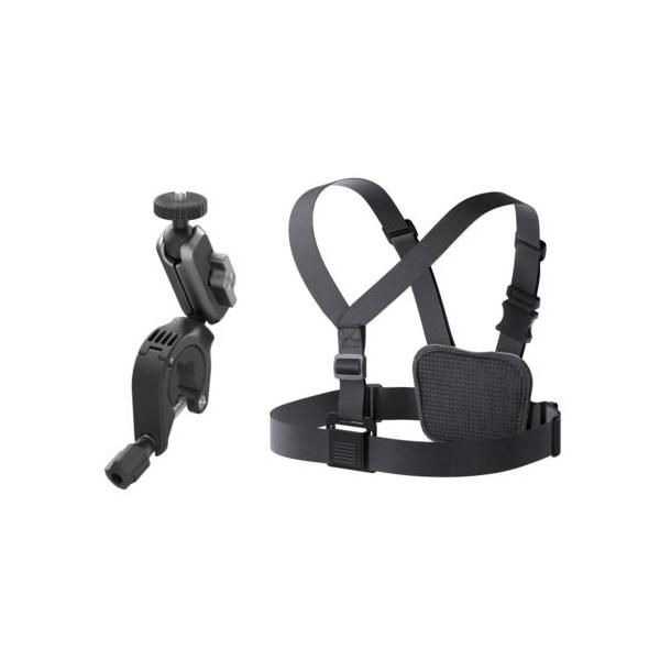 - ■ハンドルバーマウントとチェストストラップが付属しています。■ハンドルバーマウントは、カメラに直接接続する必要があります。他のエクステンションや自撮り棒等との併用はできません。■GO 3は、アクションマウントアダプターと一緒に組み立てる必要があります。■対象製品:X4、GO 3S、Ace Pro、Ace、GO 3、X3、ONE RS(1インチ360度版は除く)