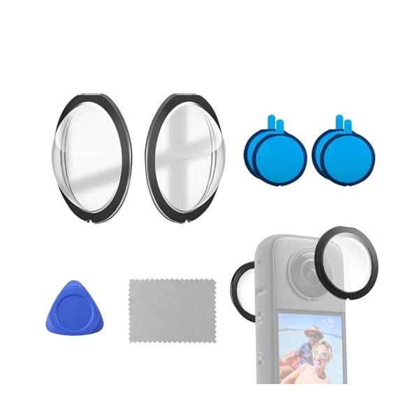 ・セット内容セットには、2枚のレンズ保護カバー、4枚の両面接着剤、1本の三角こじ開けツール、1枚のレンズ拭きクロスが含まれており。