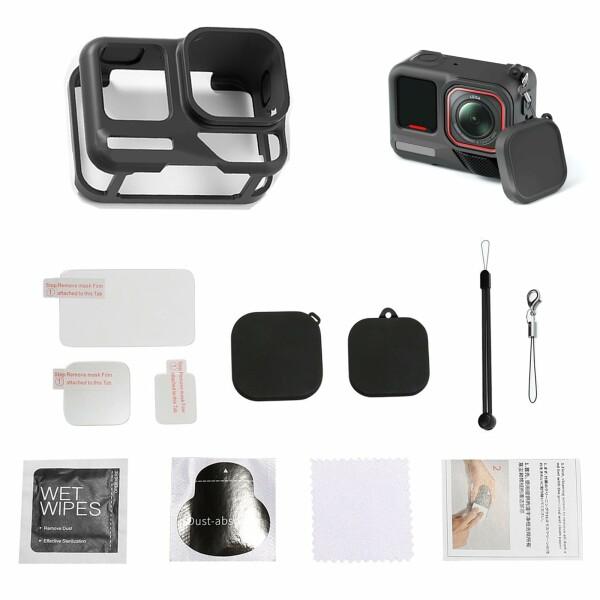 【対応機種】Insta360 AcePro2専用の8点セット:シリコン保護ケース1、レンズカバー2、ネックストラップ1、落下防止ストラップ1、メイン画面用1枚、TPUサブ画面用1枚、LED保護フィルム1