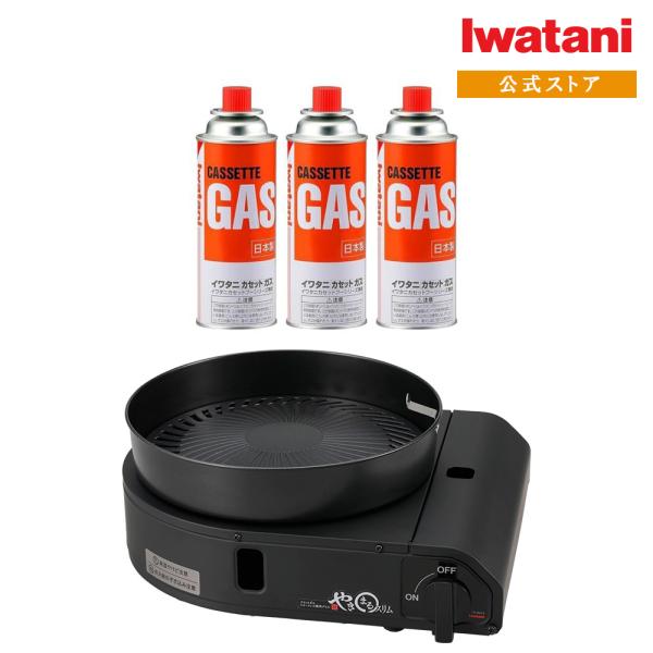 【公式】Iwatani イワタニ 岩谷 カセットガススモークレス焼肉グリル やきまるスリム ブラック CB-SLG-3-B カセットガスCB缶3Pセット