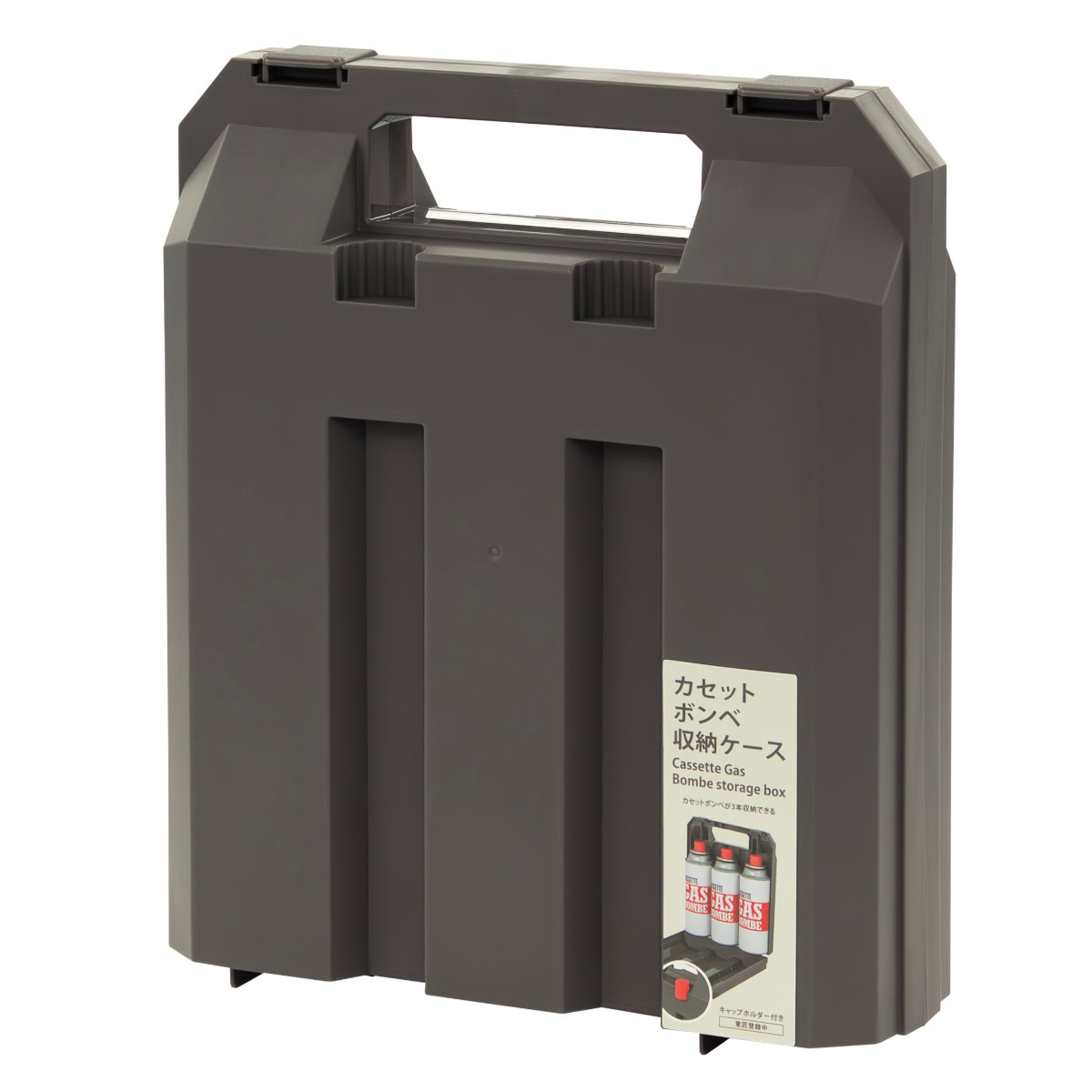 ●持ち運びに便利で、カセットボンベが3本まで収納できるケースです。