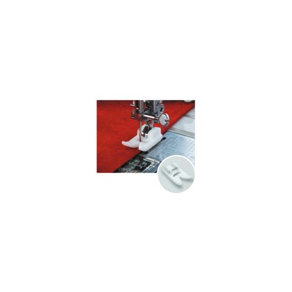 特殊樹脂で作られた押さえが、レザーやビニールなどのすべりにくい素材の布送りをスムーズにします。