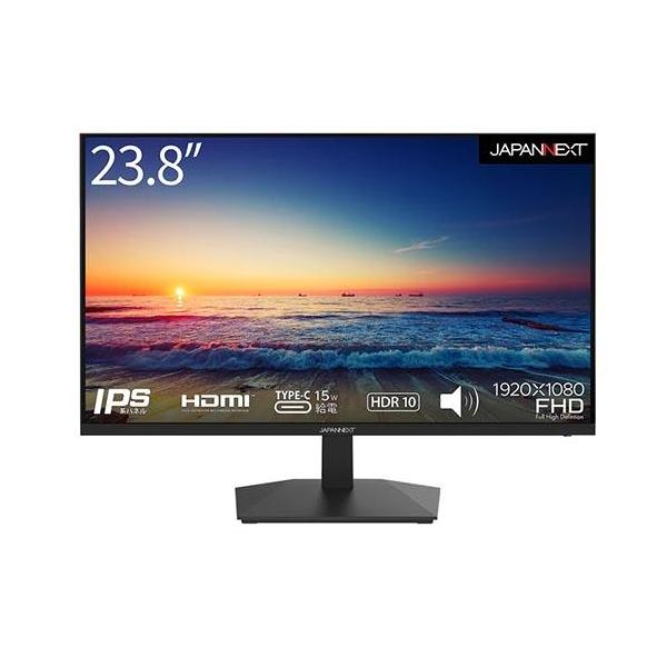- JAPANNEXT JN-IPS238FHDR-C 23.8インチIPSパネル搭載 フルHD液晶モニター ブラック JNIPS238FHDRC●23.8インチIPSパネル搭載 フルHD液晶モニター JN-IPS238FHDR-C HDMI USB-C(15W給電)23.8インチのIPS系パネル搭載、フルHD解像度(1920 x 1080)液晶モニター。HDMI USB-C(15W給電)搭載●23.8インチ フルHD23.8インチのIPS系パネルを搭載、使いやすいフルHD解像度(1920 x 1080)に対応した液晶モニターです。●IPS系パネル搭載上下左右178度に対応した広視野角IPS系パネルを搭載。コンテンツを色鮮やかに映し出します。HDR(ハイダイナミックレンジ)に対応。明るい部分も暗い部分もくっきり表現しリアルに迫った深みのある映像を演出します。HDR対応のブルーレイディスクやビデオ・オン・デマンド、ゲームなどの表示が可能です。●充実のインターフェイスインターフェイスはHDMI1.4端子を2つとUSB Type-Cの端子を1つ搭載しています。USB Type-C端子は最大15Wの給電が可能なのでスマートホンなどの充電にも使用可能です。●フレームレスデザイン採用スタイリッシュなフレームレスデザインを採用しマルチモニターにも最適です。●その他特徴100x100mmのVESAマウントに対応しますので、別売りのモニターアームなどに使用が可能です。また2W x2のステレオスピーカーを搭載します。 【仕様】サイズ:23.8輝度:350cd/m2コントラスト比:350cd/m2コントラスト比:1000:1リフレッシュレート:75Hz解像度:1920x1080応答速度:5ms (OD)視野角:H:178°V:178°表面処理:非光沢入力端子:HDMIx2/Type-Cx1スピーカー:2Wx2高さ調整:NOチルト機能:−5°+15°スイーベル:NO本体サイズ(H×W×D):高395mmx幅538mmx奥行173mm重量(kg):約2.7kg梱包寸法(mm):高395mmx幅605mmx奥行141mm