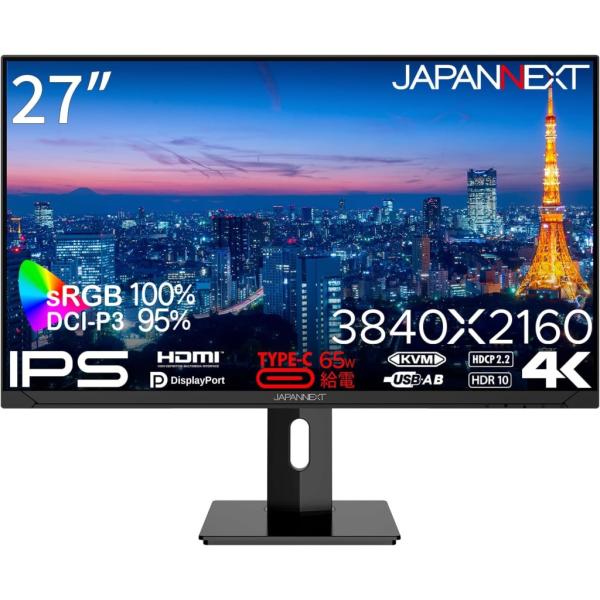 JAPANNEXT ジャパンネクスト IPSパネル 4K対応27型液晶ディスプレイ(DP/Type-C/スピーカー/2年保証) JN-IPS271UHD-C65W-HSP