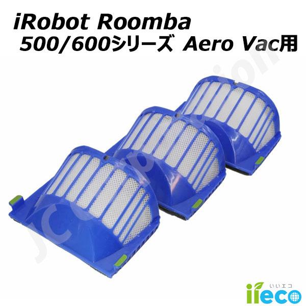 iieco ルンバ 500 600 エアロバキュシリーズ対応 青フィルター 3枚セット 交換部品 交換フィルター スペア 消耗品 互換品 定形外発送 RU-22 (10110)