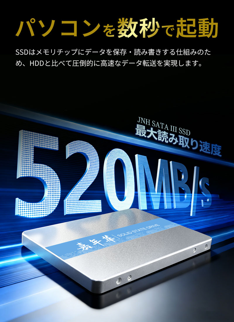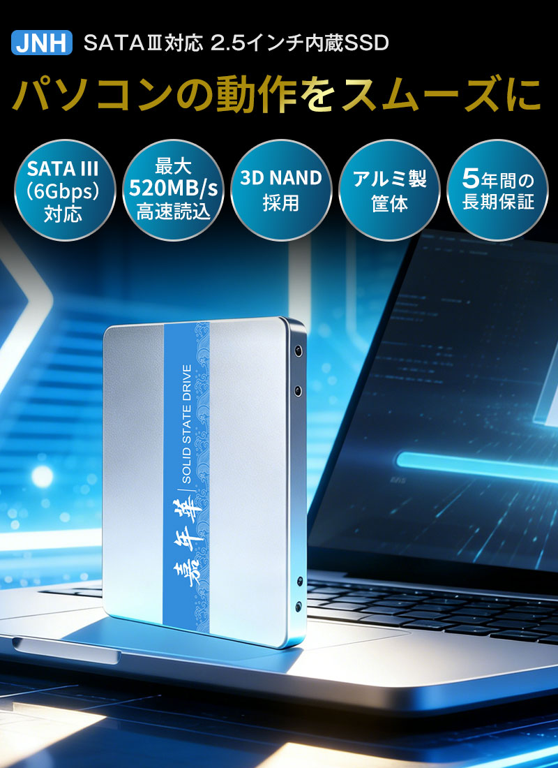 JNH SSD 1TB 3D NAND TLC採用 内蔵型 2.5インチ 7mm SATAIII 6Gb/s 520MB/s アルミ製筐体 5年保証・国内正規品・翌日配達