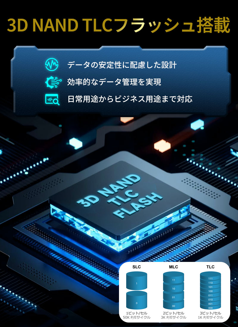 フラッシュメモリ:3D NAND TLC;