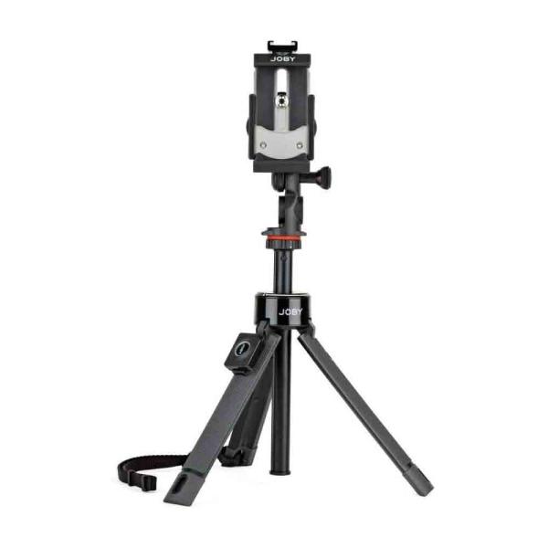 - [主な特徴] 手持ち撮影用グリップ、自撮り棒、ミニ三脚、テーブル三脚、4通りの使い方が可能「JOBY グリップタイトPROテレポッド」 グリップタイトPROは、スマートフォンをはじめ、GoPro、小型デジタルカメラなど様々な機材での撮影に使用可能な多機能なミニ三脚です。スマートフォン用とGoProマウント用のアダプターが付属しています。また、ミニ三脚中央のポールを伸ばすことで、高さのあるテーブル三脚として、更に脚を閉じれば自撮り棒としてもお使いいただけます。 ・多彩な使い方ができるテレポッド・手持ち撮影、自撮り棒、テーブルトップ三脚、ミニ三脚の4通りの使い方が可能・耐荷重は1kgで、1/4”ネジでミラーレスカメラなどが直接取付可能 ・Bluetoothでスマートフォン撮影が可能なリモコンシャッターとスマートフォンホルダーが付属※Bluetoothリモコンはすべてのスマートフォンへの対応を保証するものではございません。(到達距離約10メートル) [JOBY JB01534BWW GripTight Pro Telepod グリップタイトPROテレポッド スマホ三脚 小型三脚 セルフィースティック 写真屋さんドットコム] [主な仕様] 収納時本体高さ:34cm 収納時本体横幅:7cm 収納時本体厚み:7cm ポール調整範囲:34〜79cm 重量:0.359kg(スマートフォンホルダー含む) 耐荷重:1kg(ポールを伸ばしていない状態) カメラ取り付けネジ:1/4インチ スマートフォン取付可能幅:5.6cm〜9.1cm スマートフォンアダプター、GoProアダプター付属 ※スマートフォンアダプターにコールドシューマウントがありますので、マイクなども取付可能です。(電気的接点なし)