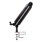 - ストリーミングやポッドキャストに最適な、カップホルダー付きブームアームマイクスタンドです。 耐荷重は最大1kg。先端はボール雲台式のため、カメラやライト等を装着した俯瞰撮影にも利用可能です。 アーム内のスロットにマイクケーブルを収納できるため、アームの角度や位置を変更する際にケーブルの挟み込みと言った偶発的な事故を防ぐことができます。スロットは、XLRケーブルも収納できるゆとりを持ったデザインで、ブラックとレッドのスロットカバーが付属しているため、お好みに合わせてアームをカスタマイズすることができます。 クランプ部分にカップホルダーとヘッドホンホルダーを装備しており、デスク回りはスッキリと整理整頓して、コンテンツ制作に集中することができます。また、デスクに直接ねじ止めするためのデスクグロメットも付属しています。