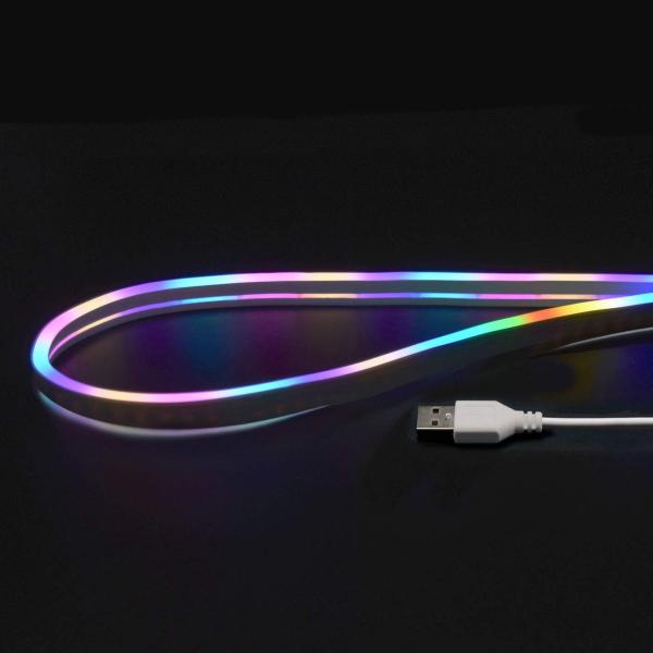 - [JTT USBネオンチューブライト (2m) レインボー NEONLT2M-RB [NEONLT2MRB]] の商品説明●曲げて、伸ばせるネオンチューブデザインのソフトLEDライト。●ネオンチューブのような光るラインを簡単に作成できます。●9色のカラーモデルをラインアップ。●ネオン管の代替として使えるテープ形状の拡散光LEDアレイ。●針金状の芯線により形状を保持。●作った形を壁などに固定するためのクリップが付属。●電源はお手軽なUSB。●選べる9色のカラーバリエーション。●本製品は、ソフトな半透明素材の内部に等間隔に高輝度LEDが埋め込まれたテープ状のライトです。 LEDの光が拡散するため、ネオン管のようにほぼ均一に光ります。●内部には、針金のような芯線が入っており、自由に曲げて形状を保持できます。●USB電源(5V/2A)でご利用いただけます。●本製品は、USB電源に接続するだけの簡単設計。●お手持ちのスマートフォン用USB充電器やモバイルバッテリーを電源にしてご利用いただけます。【活用例】●光るワイヤーアートに ・クリスマスイルミネーションに。●文字の形に曲げてネオンサインの代わりに。●ゲーミングPCのイルミネーションに 9色の豊富なカラーをラインナップ。【便利に活用できるオプション】●オプションでオンオフスイッチ付の「電池パック」と、曲げて作った形を立ててディスプレイできる「専用スタンド」をご用意。●※本製品の自重により作った形が変わってしまう場合があります。●※本製品の使用、または故障等によって生じたいかなる事故や直接・間接の損害、機器及び設備・機材等の故障について、 JTT社ではその一切の責を負いかねます。予めご了承ください。[JTT USBネオンチューブライト (2m) レインボー NEONLT2M-RB [NEONLT2MRB]]のスペック●入力:USB 5V/2A(USB電源は別途ご用意ください)●サイズ:断面約1.4×0.7cm、長さ約2m、LED×200灯●製品内容:USBネオンチューブライト本体、USBケーブル、固定用クリップ(大、小)○返品不可対象商品