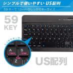 - Bluetooth搭載のスマホ、タブレット、パソコンで利用できるポータブルで持ち運びに便利なワイヤレスキーボード。シンプルな59キー(US配列)で快適な入力が可能。「Portable Wireless Keyboard」■シンプルで使いやすいUS配列US配列のシンプルなキーボード。59キーでキーサイズは約12mmとしっかりとしたキーサイズ。※JISキー配列とは異なります。■BluetoothキーボードBluetooth搭載のスマホ、タブレット、パソコンなどでご利用いただけます。■持ち運びに便利なポータブルサイズ大きさは、約W20×D12.5×H0.6cmで、A5用紙より小さく、重さは 約125gと軽量設計。■薄い約6mmのスリム設計ポータブルサイズのキーボードで薄さが約6mmとスリム設計。タブレットやスマホと持ち歩けるスリム設計。■TYPE-C充電 60時間動作TYPE-C充電ポートを搭載しており、約1.5時間の充電で最大60時間動作の省電力設計。【注意事項】HIDプロファイルに対応していない機器では使用できません。全てのBluetooth対応機器での動作を保証するものではありません。またBluetoothのバージョンによっては本製品と通信できない場合があります。2.4GHz帯の無線LANやBluetooth機器が近距離で使用されていると操作できなかったり通信エラーが発生する可能性があります。本製品と接続機器との間に壁や障害物がある場合、使用可能なエリア内であっても正常に通信できない場合があります。電池残量が少ないと正常に動作できない場合があります。本製品はUS配列キーボードで、日本語配列とは記号の位置が異なります。言語切替をするにはご利用機器の設定が必要な場合があります。