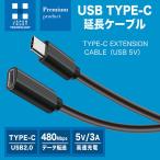 USB2.0対応、5V/3A充電・480Mbps転送対応の3m Type-C延長ケーブル ブラック