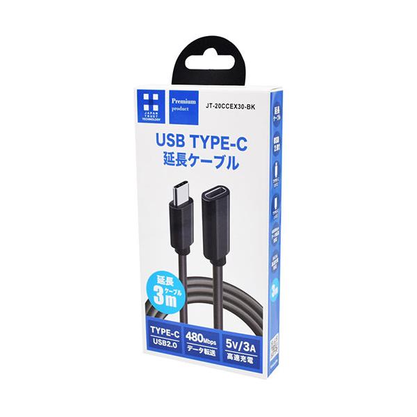 日本トラストテクノロジー Type-C延長ケーブル 3m USB2.0対応 5V/3A充電・480Mbps転送対応 JT-20CCEX30-
