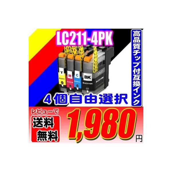 互換品 メール便送料無料 DCP-J962N インク ブラザー インクカートリッジ LC211-4PK 4個自由選択