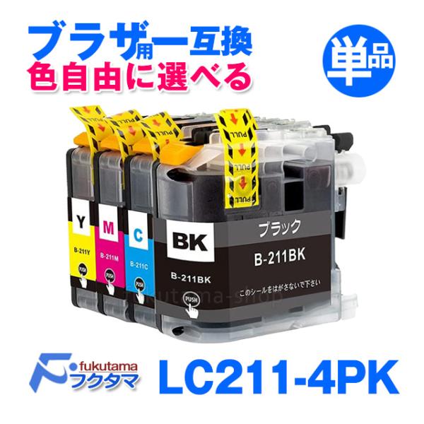 純正同様にお使いいただける ブラザー LC211-4PK 単品×1 色選べる 互換インクカートリッジです。